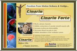 Cinnarizine inhibits contractions of vascular smooth muscle cells by blocking calcium channels. Cinnarizine increases erythrocyte deformability and decreases blood viscosity in vitro. Cinnarizine inhibits stimulation of the vestibular system. |