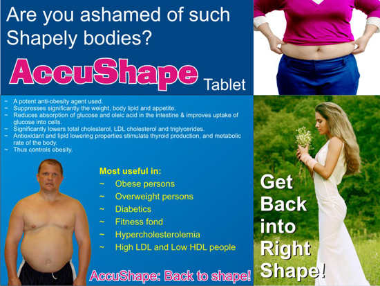 | Dosage : 2 Accushape tablets before meals Three times daily. |